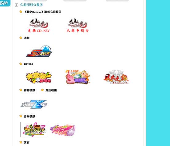 1. 在充值专区(http://pay.9you.com/funpay/)页面上点击休闲卡划分。进入划分页面后,点击《超级舞者》图标即可进入超级舞者久游币划分页面。
